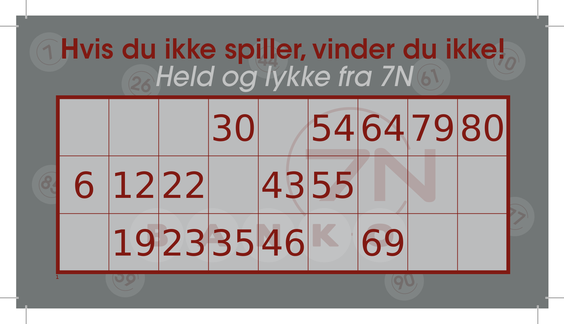 - Andre forhold, f.eks "pakkede tal" som 7n's julebanko, færre tal til "hurtigbanko" eller andet.